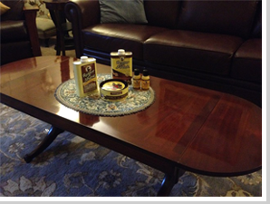 “My wife and I are extremely pleased with the results we achieved restoring this antique drop leaf coffee table. The original coffee table’s finish was dull, had water marks, scratches, and some pretty bad heat damage in the form of a 5 x 7 patch of the finish with a crackled look and texture. I used Howard’s Restore-A-Finish with 0000 steel wool to restore most of the damaged finish and bring it back to a semi-glossy luster. Then I experimented with a couple of applications your Restore-A-Shine polishing compound to remove the fine lines caused by the steel wool, and polish out the areas around the heat damage and hazy areas. I began with a light to moderate pressure then added a bit more elbow grease to polish out the stubborn areas. Finally an application of the Howard Citrus-Shield Premium Paste Wax added just the touch of glossy protection I was looking for. ”